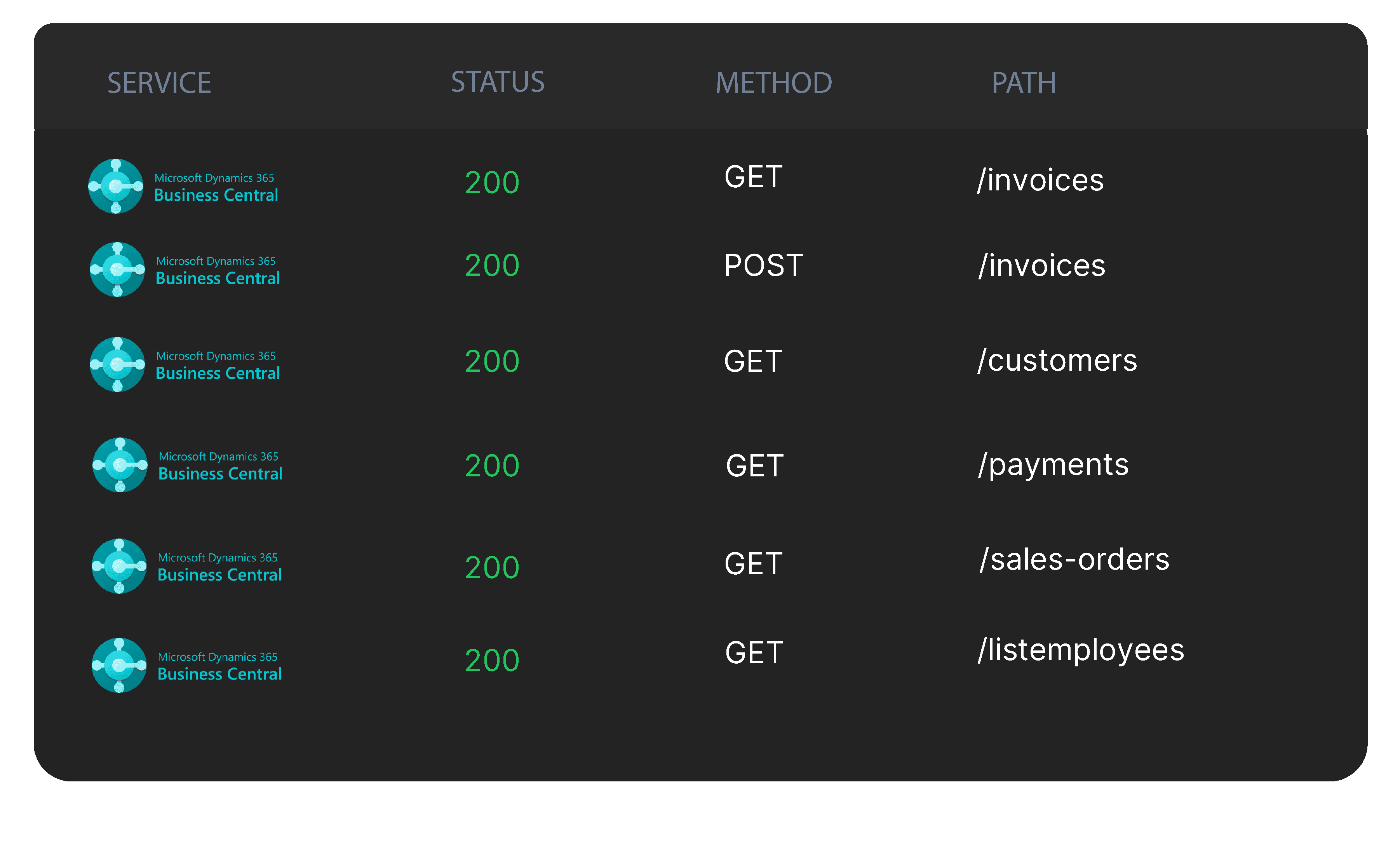 Here are the endpoints you can access using our Unified API for Microsoft Dynamics 365. Monitor, manage, and integrate in just a few clicks.